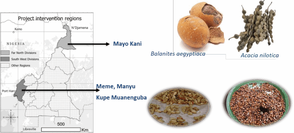 Lancé en juillet 2023, ce projet vise à rendre opérationnel le cadre national sur l’Accès et le Partage des Avantages (APA) découlant des ressources génétiques du Cameroun. Doté d’un budget de 2 millions de dollars US du FEM, il intervient dans les régions du Sud-Ouest et de l’Extrême-Nord. L’objectif est de générer des avantages économiques pour les communautés locales grâce à l’utilisation commerciale durable de la biodiversité. Le projet facilite la signature de contrats APA entre les communautés et les entreprises, soutient la recherche sur des espèces comme Balanites aegyptiaca et Irvingia wombolu, et renforce les capacités des acteurs locaux. Une des réalisations marquantes est la production de plus de 8 000 plants pour restaurer 20 hectares de terres dégradées dans le Mayo Kani.